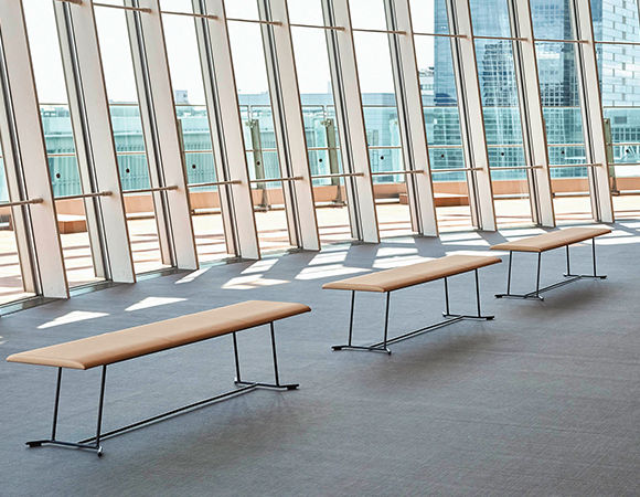 ヒラエスはクレスCRESの店舗・業務用ベンチソファです。MDFを使用したスタイリッシュなベンチ。軽やかなデザインで、自然と空間に溶け込みます。クリニック・薬局・病院・医院・ショップ・商業施設などにおすすめです。